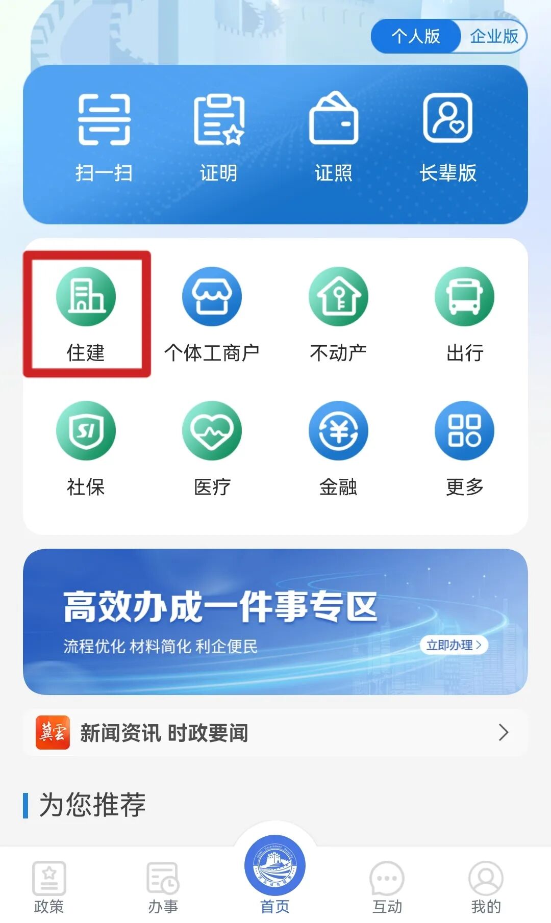 提示人脸识别验证,验证通过后,即可进入住建主页面